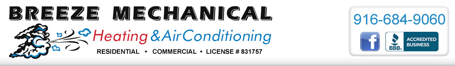 Breeze Mechanical has been providing expert Heating & Air Conditioning service and installation in the Elk Grove and the Sacramento area for over 20 years. We know great efficiency equals greater savings and we work hard to find solutions to save you money on your heating and cooling bills.